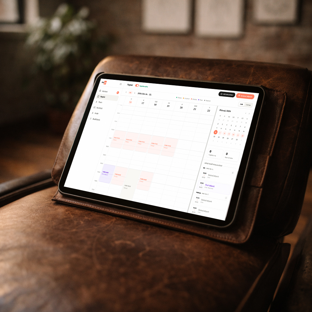 Állítsd be a szabad időpontjaidat, blokkold a pihenőnapokat. Google Calendar szinkron, automatikus emlékeztető emailek, és az ügyfél soha nem lát olyat, ami nem elérhető.